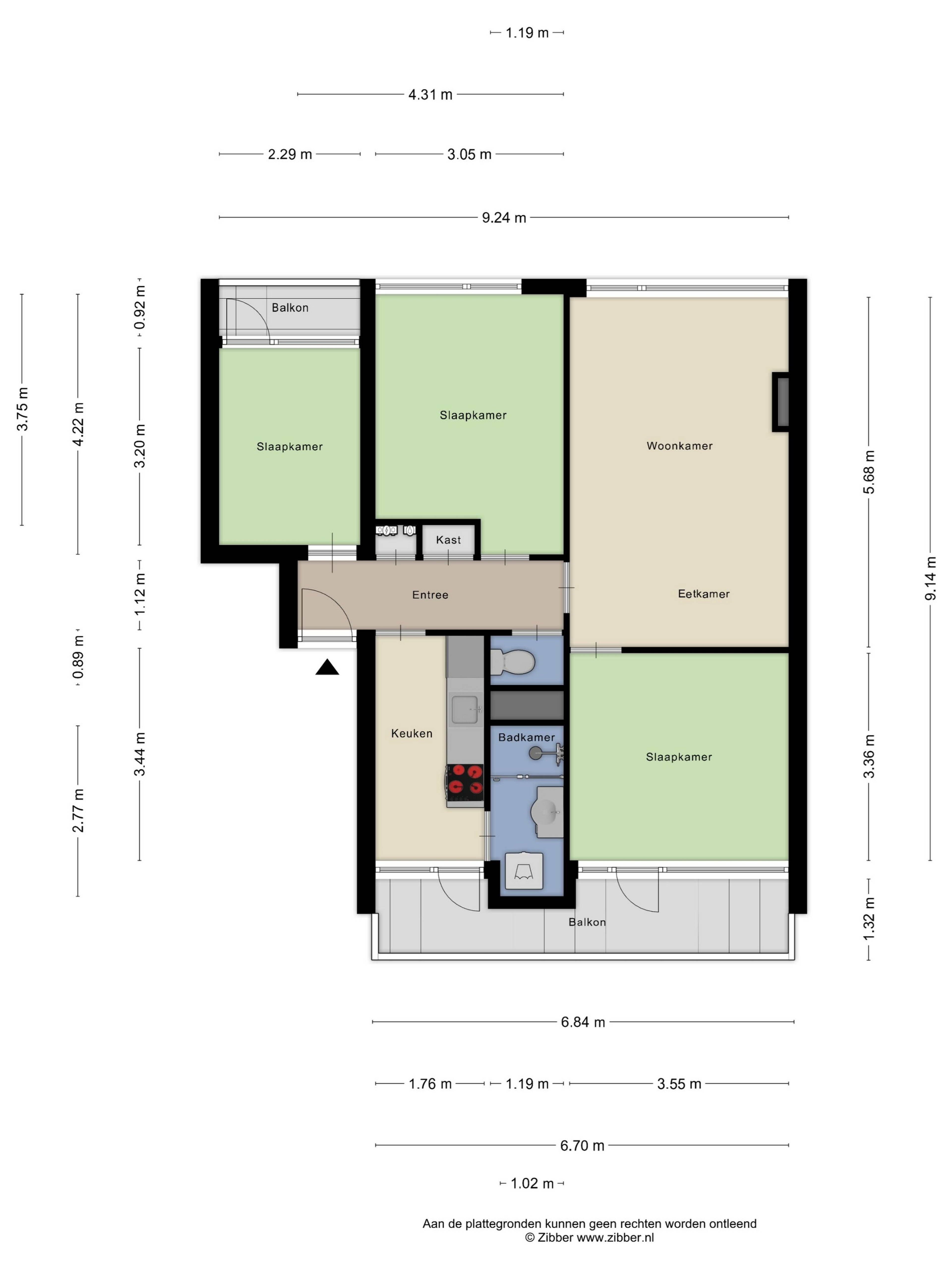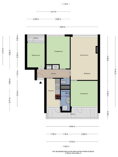 Via de centrale entree met intercom, brievenbussen en toegang tot de bergingen bereik je het appartement. De hal geeft toegang tot twee slaapkamers aan de voorzijde, een apart toilet, handige bergkasten, de keuken en de lichte woonkamer.