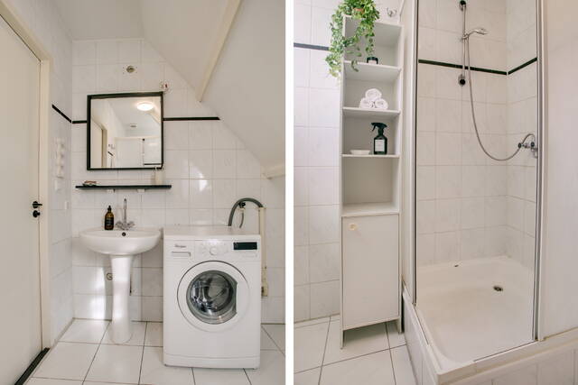 •Badkamer: Neutraal afgewerkt, met wastafel, douchecabine en plek voor de wasmachine.