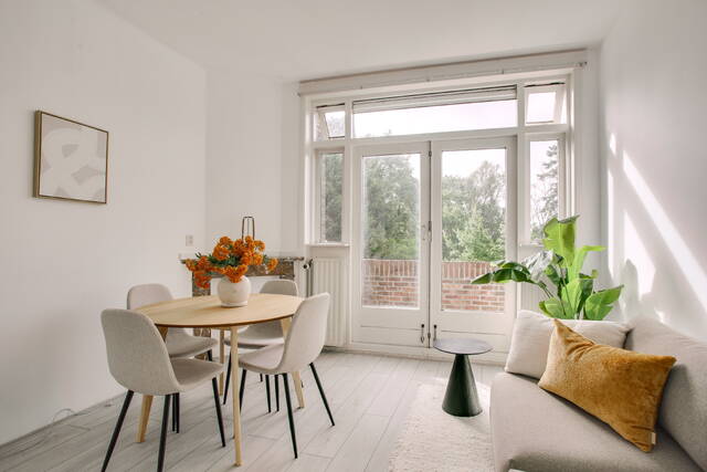 Ben je op zoek naar een licht, instapklaar appartement met twee balkons én een groen uitzicht, op steenworp afstand van het centrum van Leiden? Dan is dit sfeervolle 3-kamerappartement precies wat je zoekt! Dit charmante jaren ’30-appartement op de tweede etage biedt een prettige combinatie van rust, licht en comfort – ideaal voor starters, expats of een tweepersoonshuishouden.
