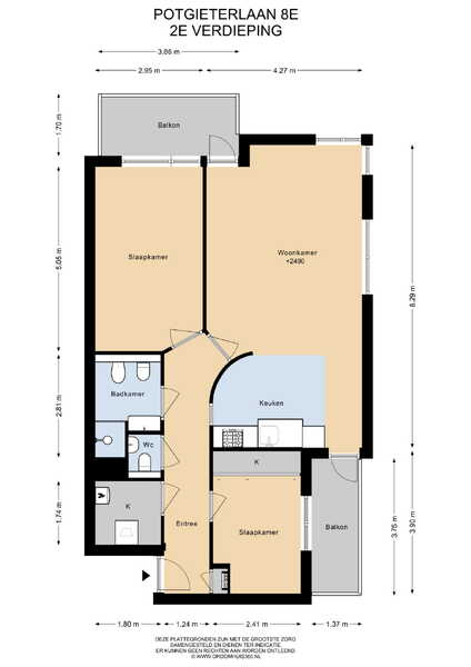 - Gebouw gebonden buitenruimte (balkons): 12 m2