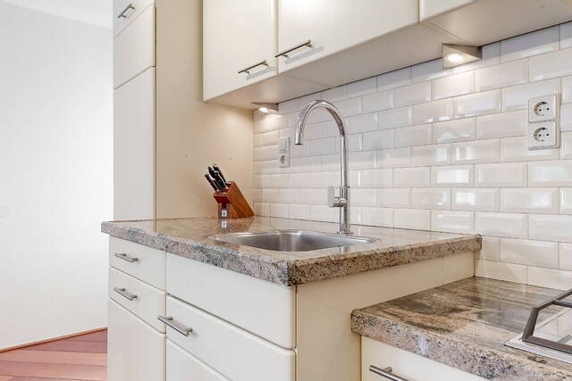 Entrance, hall with meter cupboard, laundry room/storage room with central heating boiler, modern toilet with sink, bathroom and access to the living room with open kitchen. The spacious and very bright living room has a beautiful wooden floor, smooth plastered walls and gives access to the two balconies (east and south facing). The open kitchen has a natural stone countertop and is of course equipped with various (built-in) appliances such as an oven, dishwasher, 4-burner gas stove with extractor hood and a refrigerator. A cozy (breakfast) bar has been created near the kitchen, nice to have breakfast or a cup of coffee. There are also 2 bedrooms and a modern luxurious bathroom with a spacious walk-in shower, a bidet, (sani-broyeur) toilet, washbasin with mirror cabinet and a design radiator.