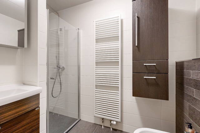 Verder zijn er 2 slaapkamers en een moderne luxe badkamer met ruime inloopdouche, een bidet, (sani-broyeur) toilet, wastafelmeubel met spiegelkast en een design radiator.