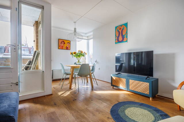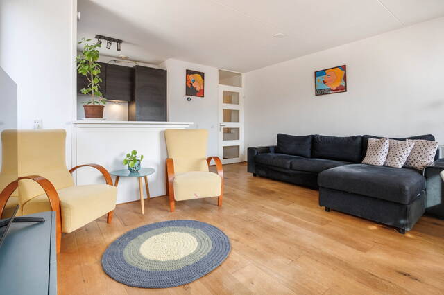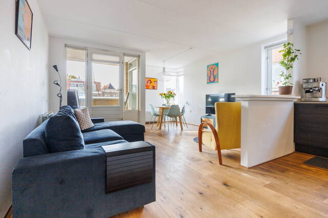 De heerlijke ruime en zonnige woonkamer is door de hoekligging en de vele ramen opvallend licht en daardoor heb je ook vanaf alle zitplekjes fraai uitzicht. De moderne open keuken beschikt over diverse inbouwapparatuur o.a. een 4-pitsgasfornuis, een combi oven/magnetron, een vaatwasser, een koel-/vries combinatie en een ingebouwde afzuigkap in de bovenkastje. Op het gezellige balkon (zuiden) heb je veel privacy en kan je heerlijk genieten van het zonnetje en het uitzicht.