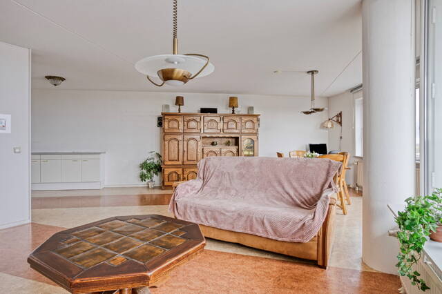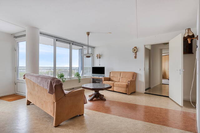 The generous living room with large windows offers a stunning unobstructed view, on clear days, you can even see all the way to The Hague!