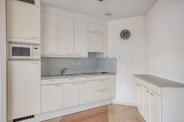De keuken sluit direct aan op de woonkamer en is praktisch én functioneel ingericht. Dankzij de slimme indeling beschik je over volop werk- en kastruimte. De keuken is uitgerust met diverse inbouwapparatuur.