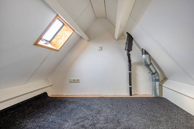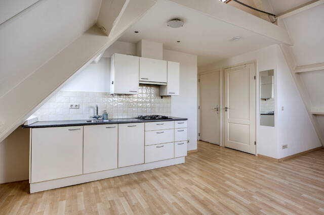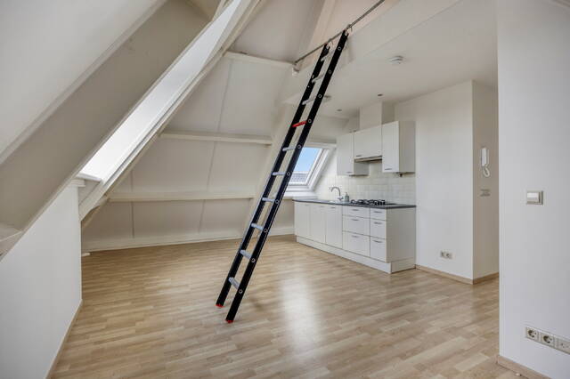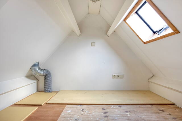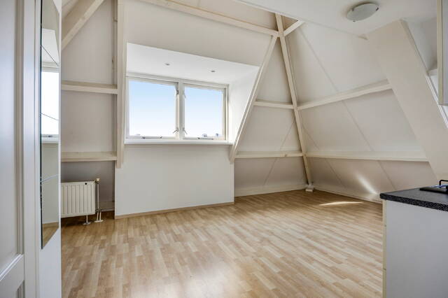 De slaapkamer is comfortabel en rustig gelegen, met een fraai uitzicht over de historische daken van Leiden. De knusse badkamer beschikt over een inloopdouche, wastafel en designradiator. In een aparte kast vindt u de cv-installatie en de aansluiting voor de wasmachine, met extra opbergruimte. Ook het toilet is separaat en voorzien van een fonteintje.