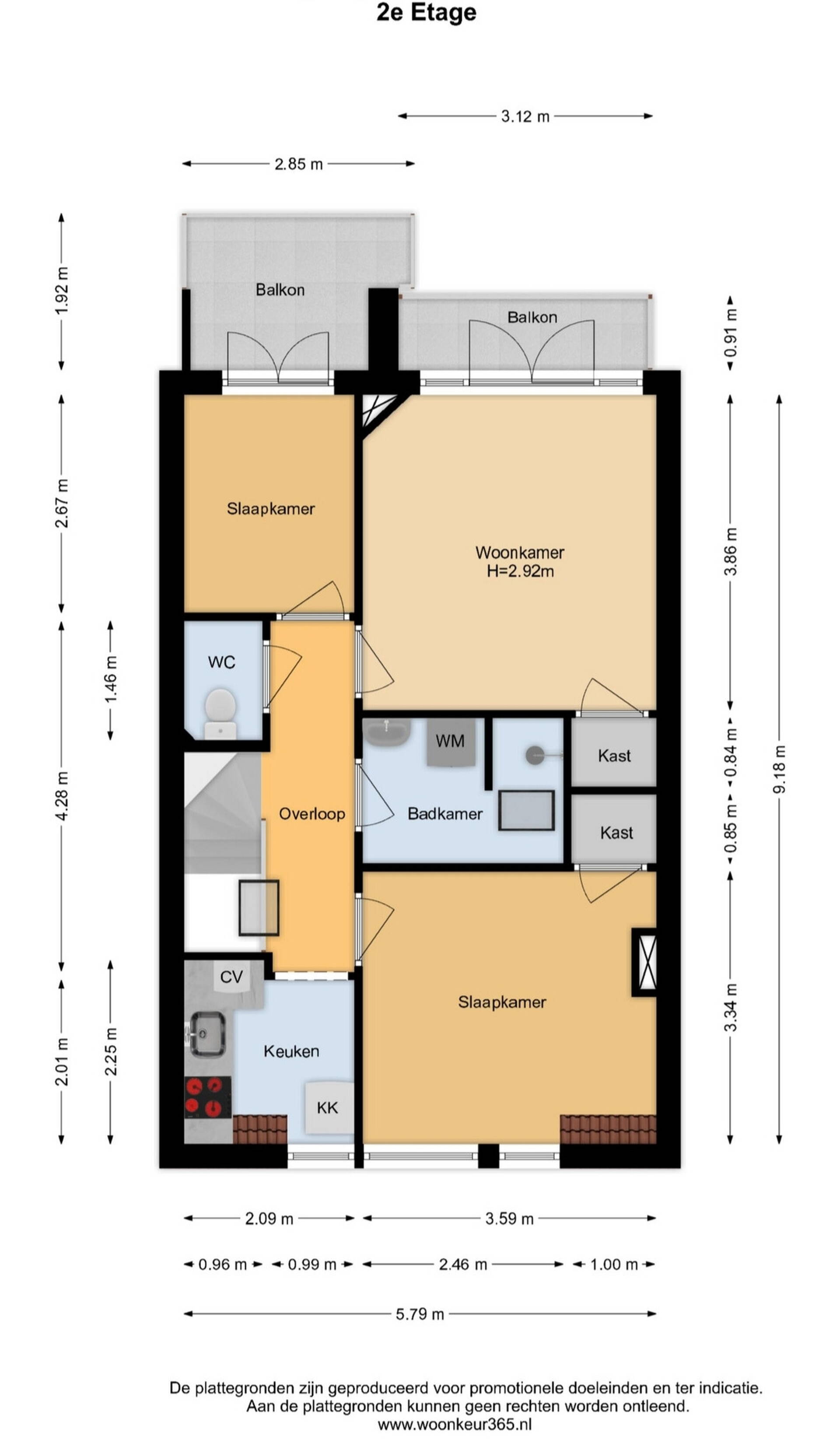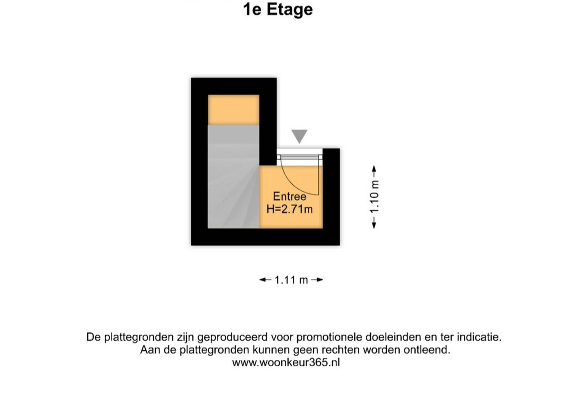 Via een eigen entree op de eerste verdieping (hoogte 2,71m) bereik je via de trap de woonverdieping.