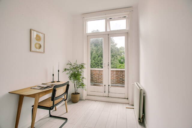 Twee balkons met groen uitzicht, een lichte doorzon-woonkamer, twee slaapkamers en een praktische indeling in een karakteristiek jaren ’30-pand. Deze instapklare bovenwoning op is perfect voor starters, jonge stellen of expats die op zoek zijn naar sfeervol en efficiënt wonen nabij het centrum van Leiden.