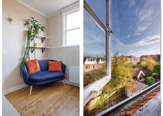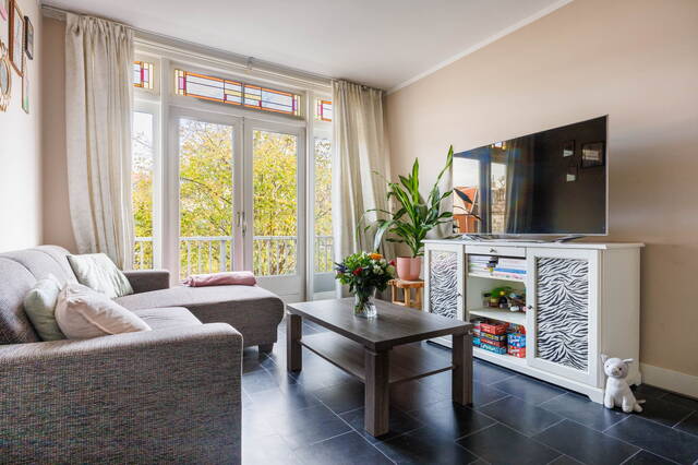 Atmospheric and surprisingly spacious 1930s upper-floor apartment in the Professorenwijk, featuring four bedrooms, a balcony, a storage room on the ground floor, and beautiful stained-glass windows. The property has dormer windows at both the front and rear, creating plenty of extra space. A charming, characteristic home in a lovely neighbourhood!