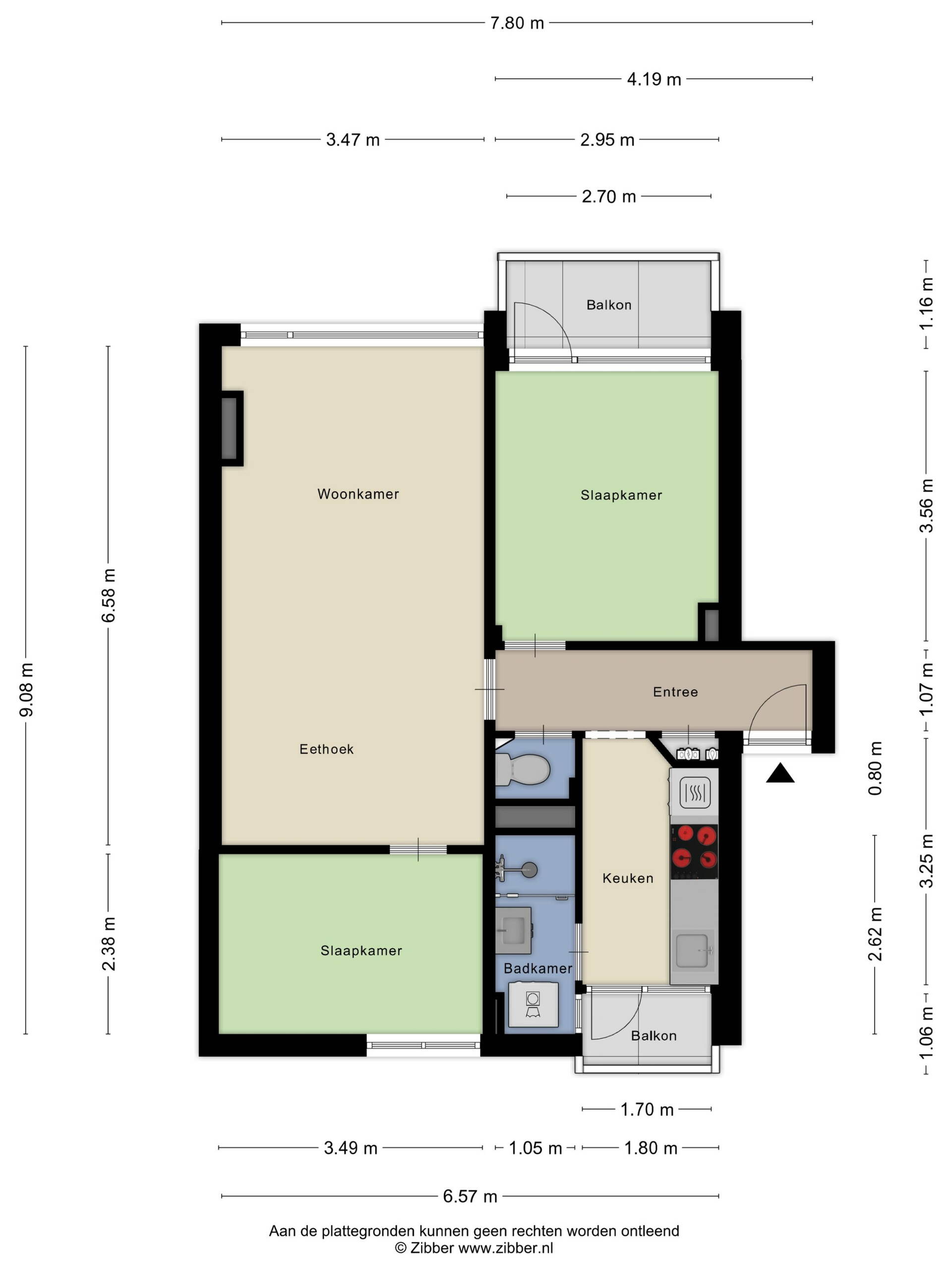 Normaal gesproken hebben dit type appartementen een woonoppervlakte van circa 59 m². Bij deze woning is het gebruiksoppervlak formeel iets kleiner, doordat zich tussen het toilet en de douche een constructie/schacht bevindt met een oppervlakte van meer dan 0,5 m². Conform de officiële meetinstructies wordt deze ruimte aangemerkt als aftrekpost en daarom niet meegerekend in het gebruiksoppervlak wonen.