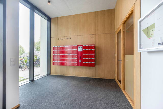 Afgesloten entree met video intercom, brievenbussen, toegang tot de lift en het trappenhuis.