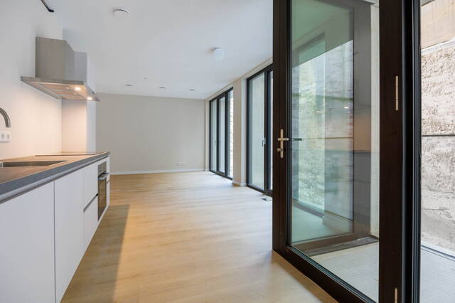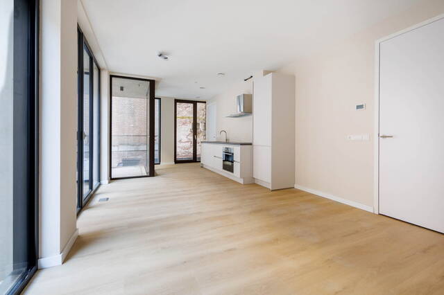 Bij binnenkomst leidt de hal naar het separate toilet en de leefruimte. De lichte woonkamer, met hoge ramen en sfeervolle industriële accenten, vormt een fijne basis om een comfortabele woonruimte naar eigen smaak te creëren. De open keuken is zeer recent geplaatst en voorzien van diverse inbouwapparatuur. Aansluitend aan de woonkamer ligt de slaapkamer met badkamer en suite, wat zorgt voor een praktische en rustige indeling. De badkamer is nog niet afgewerkt, waardoor volop ruimte bestaat om deze geheel naar eigen smaak te realiseren. Desgewenst kan de afwerking, binnen een stelpost van € 10.000,-, door verkoper worden verzorgd.