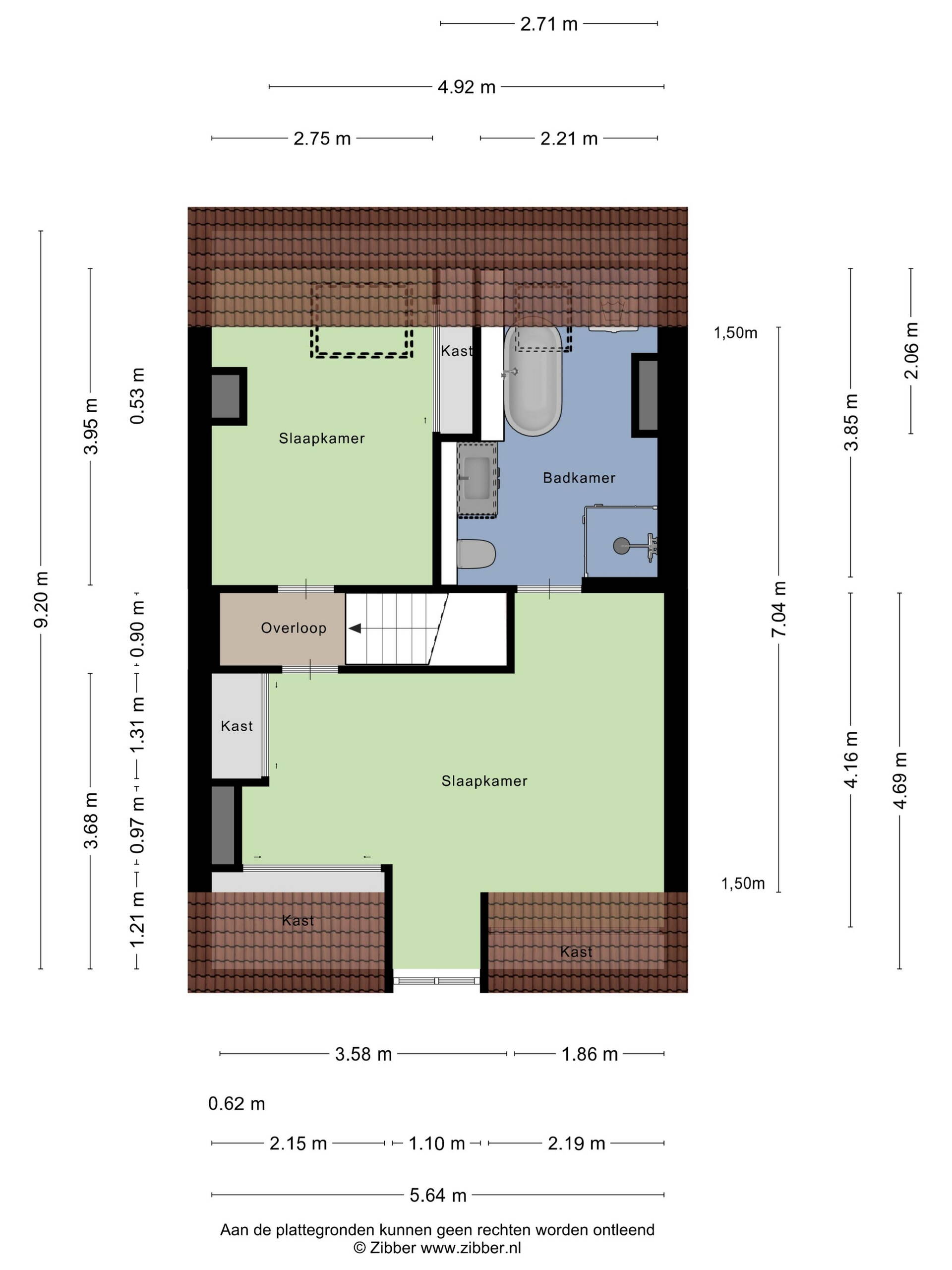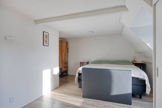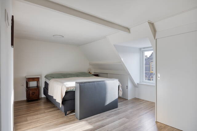Overloop met toegang tot de tweede en derde slaapkamer. De eerste slaapkamer, gelegen aan de achterzijde is perfect te gebruiken als kinderkamer, werkkamer of als grote inloopkast. De ruime hoofdslaapkamer aan de voorzijde beschikt over een grote inbouwkast en biedt toegang tot de moderne en stijlvolle en suite badkamer. Deze is voorzien van een ligbad, douche, wastafelmeubel, toilet en wasmachineaansluiting. Mede door het dakraam een comfortabele en rustgevende plek om de dag te beginnen of af te sluiten.