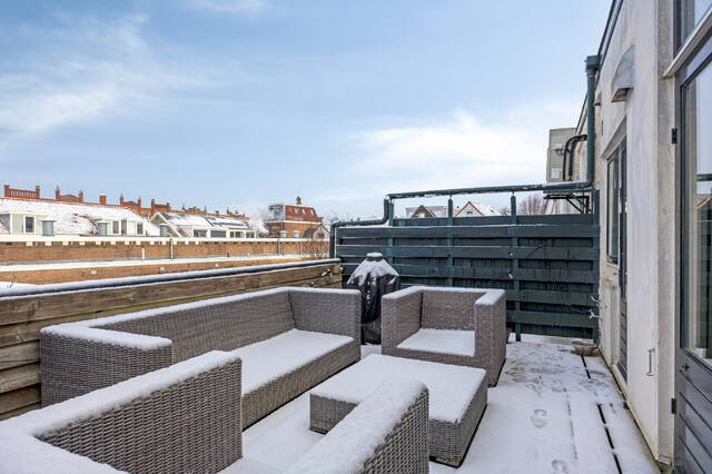 Zowel via de openslaande deuren in de woonkamer als vanuit de keuken is er directe toegang tot het royale dakterras van circa 20 m². Dankzij de vrije ligging is dit een heerlijke plek om in het voorjaar en de zomer volop van de zon te genieten en in alle rust buiten te zitten.