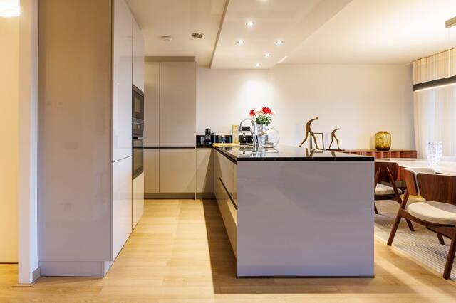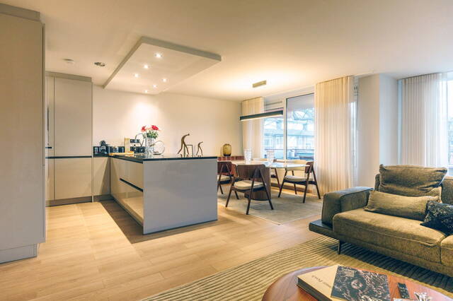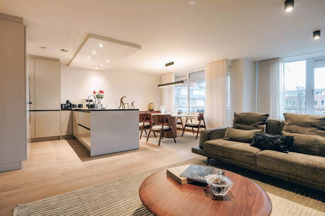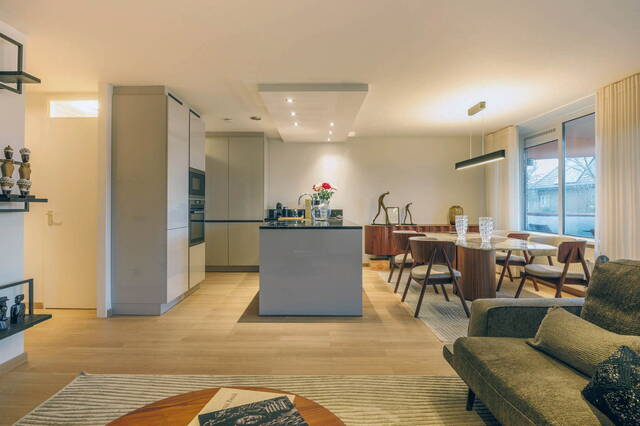 Via de entree met garderobe en meterkast bereik je de royale hal, die naadloos overgaat in de riante living. De woonkamer is dankzij de vele raampartijen heerlijk licht en straalt een gevoel van luxe en comfort uit. De prachtige Bruynzeel-keuken met kookeiland is uitgerust met hoogwaardige AEG-inbouwapparatuur, waaronder een inductiekookplaat met geïntegreerde afzuiging, Quooker, een oven, een magnetron, een vaatwasser een koel-/vriescombinatie en een natuurstenen blad. De fraaie hoge kasten bieden volop extra bergruimte. Vanuit de keuken is de wasruimte bereikbaar, voorzien van aansluitingen voor wasmachine en droger en de opstelling van de cv-ketel. Het fijne balkon, gelegen op het noordoosten, biedt een groen uitzicht en zicht op het speeltuintje.