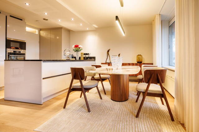 Via the entrance with wardrobe area and meter cupboard, you reach the spacious hallway, which seamlessly flows into the generous living area. Thanks to the many windows, the living room is wonderfully bright and exudes a sense of luxury and comfort.
