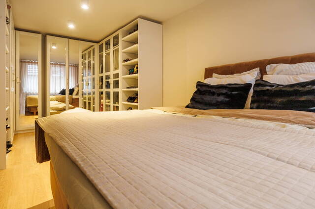 The property is part of a small-scale apartment complex built in 1995 and equipped with an elevator. The complex is situated in a quiet cul-de-sac adjacent to a small playground. At the rear of the building you will find the storage units and the communal garden. This move-in-ready and energy-efficient apartment also boasts an energy label A!