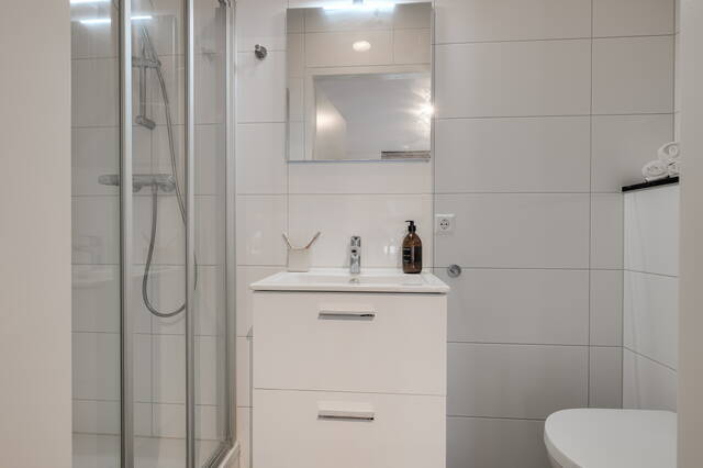 De slaapkamer is rustig gelegen en prettig van formaat. De badkamer is modern afgewerkt en beschikt over een douche, wastafelmeubel en toilet.