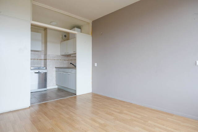 Charming and bright studio apartment with a lovely balcony and a private storage unit, located on the 3rd floor of the Rijnlandflat. The apartment requires modernization but is conveniently located and pleasantly compact. The apartment complex is equipped with an elevator, a shared secured bicycle storage area, and ample parking is available next to the complex.