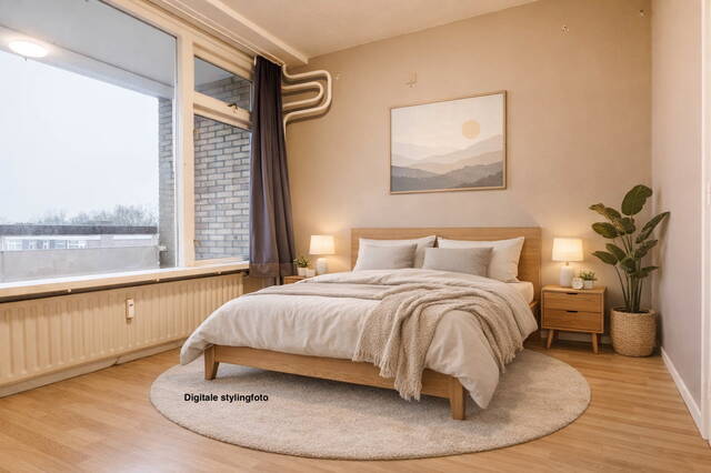 In de presentatie zijn ook digitale stylingfoto’s van de woonkamer en slaapkamer opgenomen om een goed beeld te krijgen van de mogelijkheden. De apparatuur in het appartement, blijft achter: wasmachine (2025), vaatwasser (2023), koelkast (2020) en 3-plaats inductie.