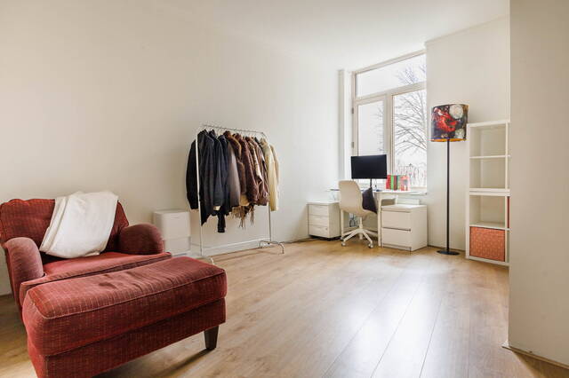 De masterbedroom is zeer ruim en bevindt zich aan de rustige achterzijde van het appartement, wat zorgt voor optimale stilte en ontspanning. Vanuit deze slaapkamer heeft u toegang tot het tweede balkon met uitzicht op de goed onderhouden binnentuin.