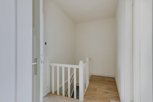 Via het gezamenlijke trappenhuis bereik je de woning op de tweede verdieping.