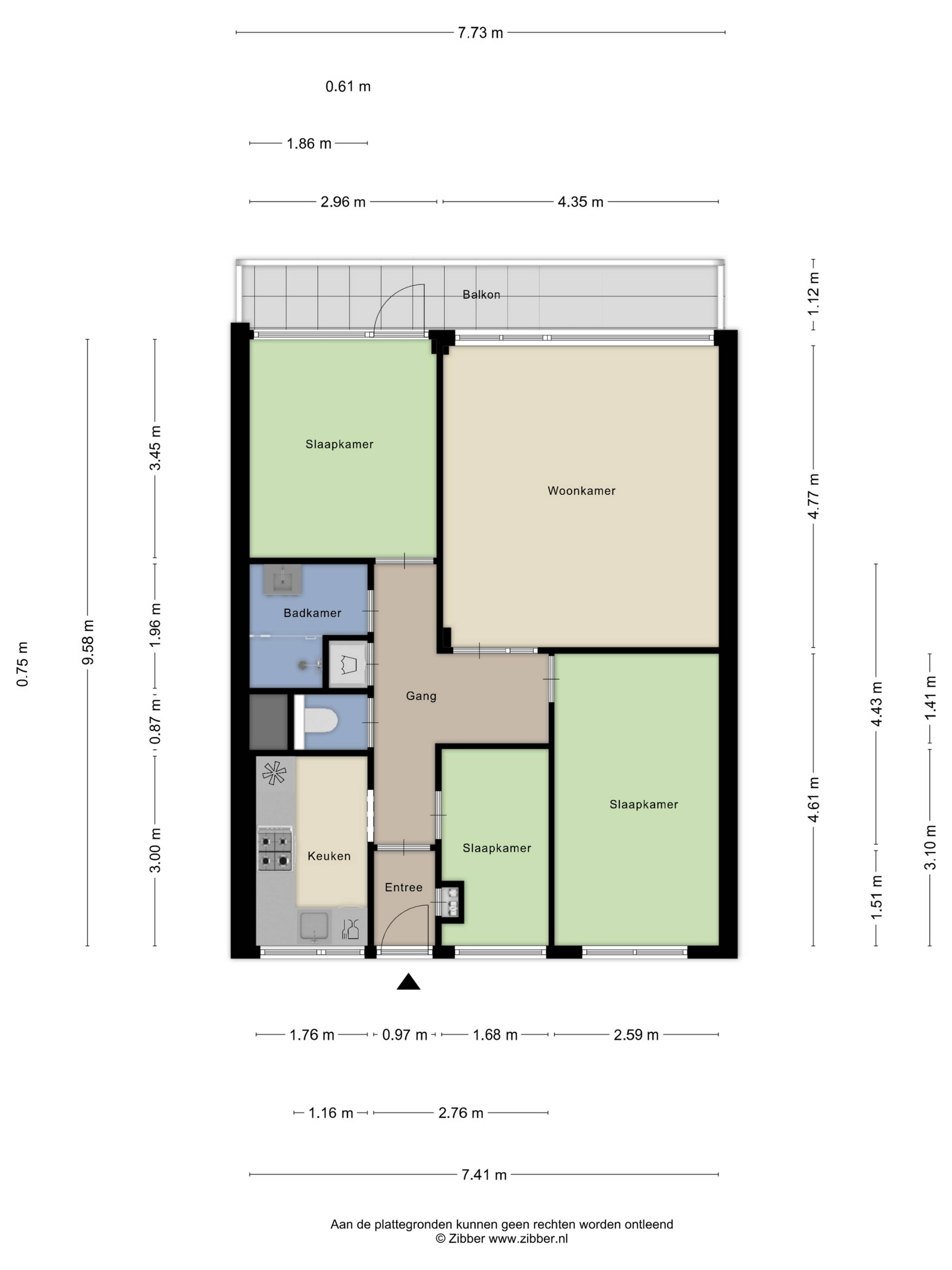 70 m2 4 kamers 3 slaapkamers
