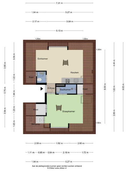 • Totale vloeroppervlakte (zonder schuine kanten): ca. 77 m²