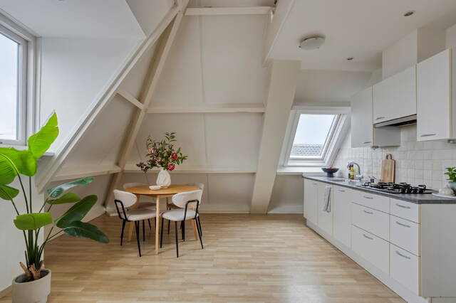 Welcome to Turfmarkt 7e, a wonderful opportunity to live on the top floor of a characteristic building in the historic heart of Leiden. This well-maintained and move-in-ready apartment combines classic charm with contemporary comfort. Thanks to its elevated position, you can enjoy extra peace and quiet, plenty of privacy, and beautiful views over the city. The large windows provide an abundance of natural light and give the apartment an open and airy feel. With its modern finishes, spacious living room, and open kitchen, this is an ideal home for anyone who wants to combine city living with comfort.