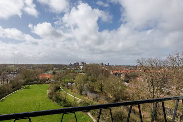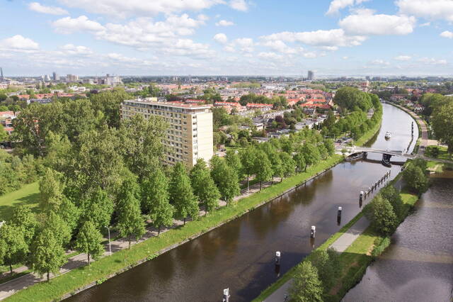 Upon entering, you notice it immediately: what a beautiful, bright apartment—and what a view! This spacious one-bedroom apartment (formerly two bedrooms) is located on the ninth floor and features an internal southwest-facing balcony. The green Park Roomburg and the shimmering waters of the Rijn-Schie Canal lie at your feet. The property has been stylishly modernized and is ready to move into!
