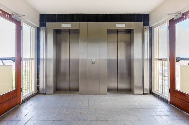 Entree, bellentableau, trappenhuis en twee liften. Eigen berging in de kelder (nr. 97