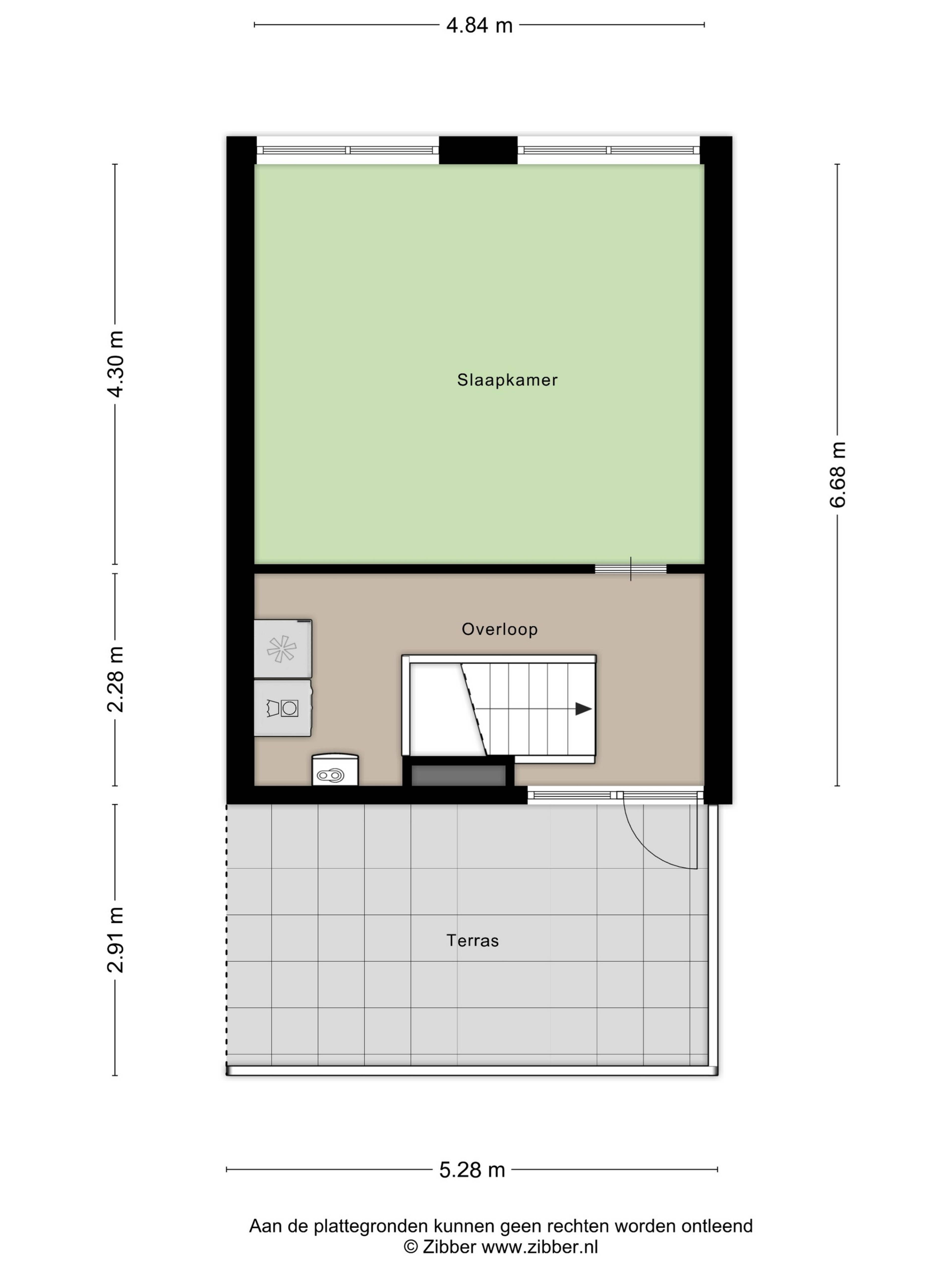 De tweede verdieping biedt een royale slaapkamer en toegang tot het zonnige dakterras van ca. 15 m² een heerlijke plek om te ontspannen. Daarnaast is hier ook extra ruimte voor de wasmachine en droger.