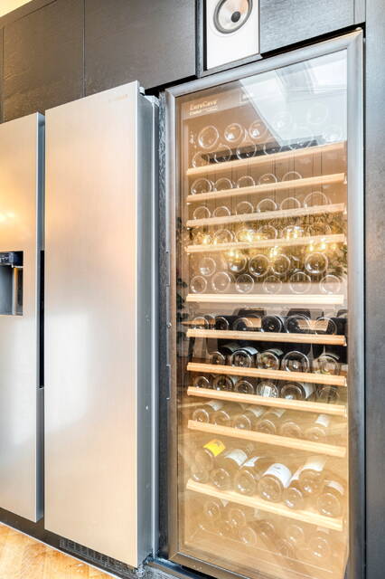 De moderne uitgebouwde open keuken met kookeiland is een droom voor elke thuiskok: veel kast- en bergruimte, een moderne grote inductiekookplaat, vaatwasser, Amerikaanse koelkast, ruime wijnkoelkast, stoomoven, Quooker én directe toegang tot de tuin met vrijstaande houten berging en achterom.