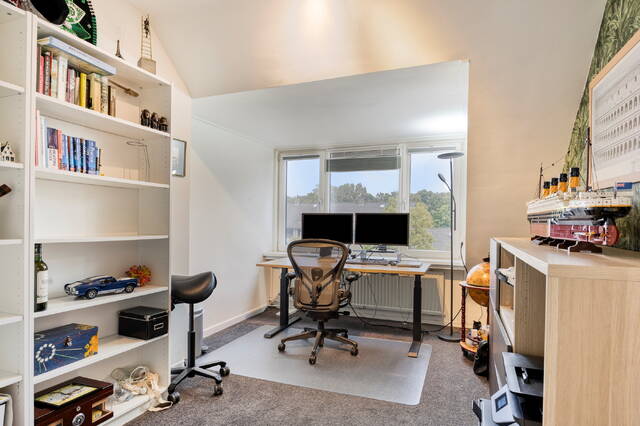 De tweede verdieping biedt een ruime voorzolder met wasmachine en droger, twee ruime slaapkamers én een extra bergruimte. Dankzij de airconditioning blijft deze verdieping zelfs op warme zomerdagen heerlijk koel.