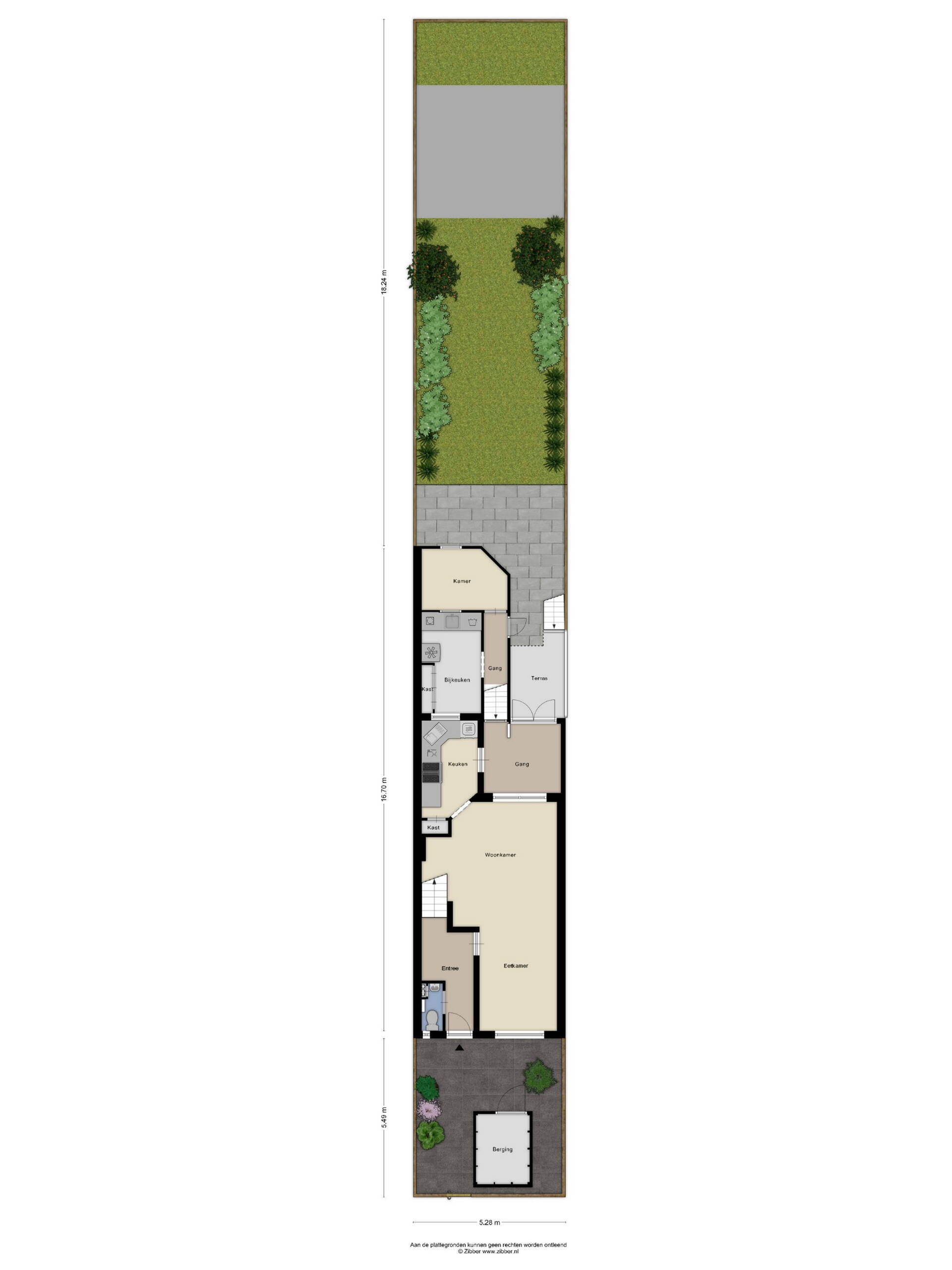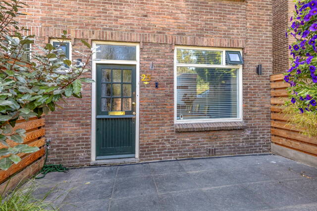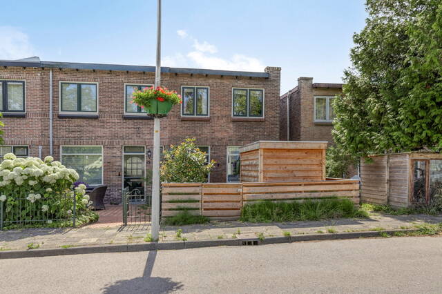 De voortuin is royaal en heeft een schuur voor de fietsen. De circa 21 meter diepe achtertuin ligt op het zuiden en beschikt over een ruime schuur van circa 5 bij 5 meter.
