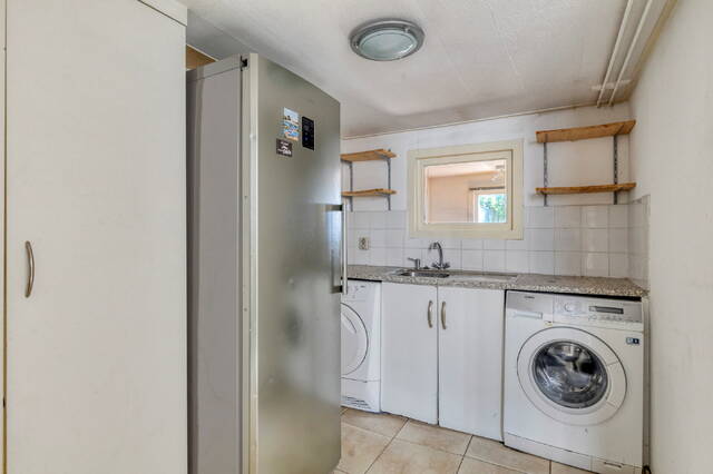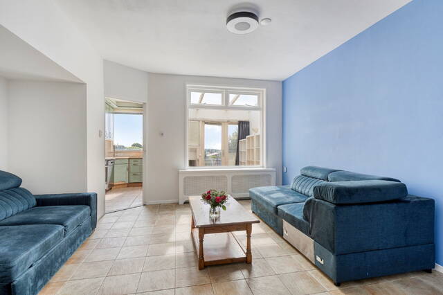 Entrance with access to the toilet, the staircase to the first floor, and the door to the living room. The toilet has a small sink, and the meter cupboard is also located here. Thanks to large windows on both sides, the living room is wonderfully bright. At the front, you’ll find the dining area with enough space for a large dining table. There is also a spacious sitting area with room for a generous sofa. From the living room, you have access to the semi-open kitchen. Adjacent to this is a small sunroom, and the stairs down lead to the utility room and the study.