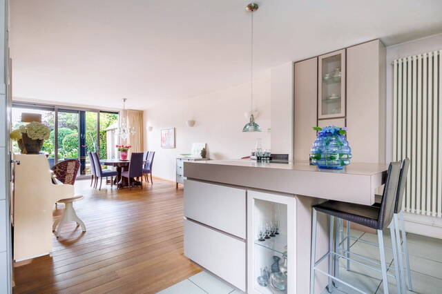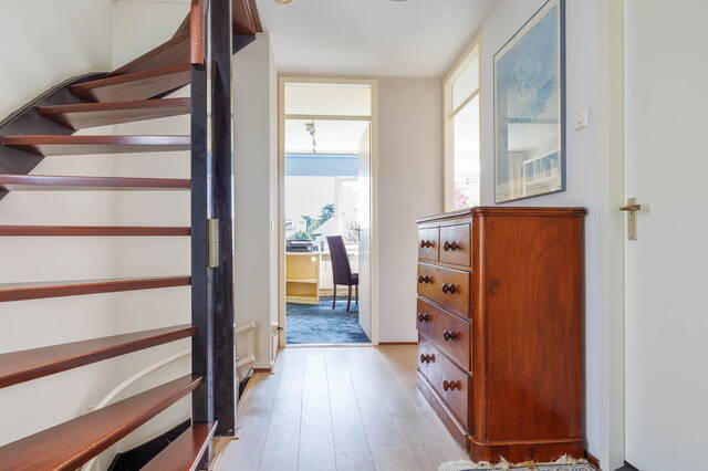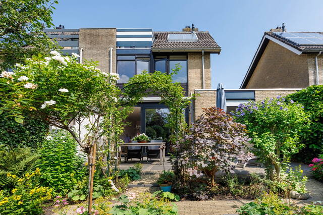 This spacious linked home is located in a lovely, green part of Merenwijk and boasts a beautifully landscaped south-facing garden. In addition to a very generous living room, the property features a garage, three (bed)rooms on the first floor, and a large attic floor with a bedroom, extra storage space, and a balcony offering stunning views of the river Zijl.