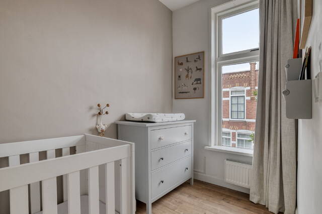 Op de eerste verdieping leidt de overloop naar drie slaapkamers, waarvan één royale kamer aan de achterzijde en twee aan de voorzijde. De twee slaapkamers aan de voorzijde zijn goed te gebruiken als kinder- of werkkamer en beide voorzien van rolluiken. De luxe badkamer, in 2021 volledig vernieuwd, is centraal gelegen en voorzien van een inloopdouche, wastafelmeubel en een tweede toilet.