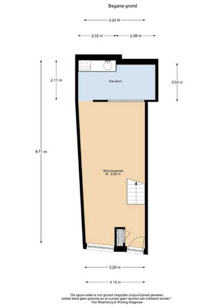 Entree met direct toegang tot de fraaie woonkamer met aansluitend de gezellige keuken met een eetgedeelte waar voorheen de binnenplaats was. Door o.a. nog de aanwezige hoge ramen naar de woonkamer is dit een heel gezellig zitgedeelte met veel daglicht. De knusse keuken beschikt o.a. over een 4-pitsgasfornuis, een inbouwoven en een (losse) magnetron.