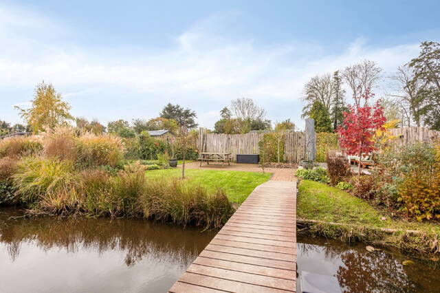 De woning ligt op een idyllische plek waar natuur en comfort elkaar ontmoeten. De fraai aangelegde, professioneel ontworpen tuin op het zuidwesten biedt een weids uitzicht over het water en de omliggende weilanden. De tuin is voorzien van een natuurlijke oever waar (water)vogels zich graag laten zien, en een charmante pluktuin waar eigen bloemen of kruiden kunnen worden gekweekt. Regelmatige bezoekers zijn ijsvogels, fazanten en zelfs vossen, wat bijdraagt aan de bijzondere sfeer van deze locatie. Het grote hardhouten terras vormt een heerlijke plek om te ontspannen of te dineren aan het water. Dankzij het extra aangekochte perceel is de tuin uitzonderlijk royaal en biedt deze volop mogelijkheden voor tuinliefhebbers en buitenleven. De ruimte en ligging maken het mogelijk om meerdere zitjes te creëren, zodat op elk moment van de dag van de zon, de rust of het uitzicht genoten kan worden.
