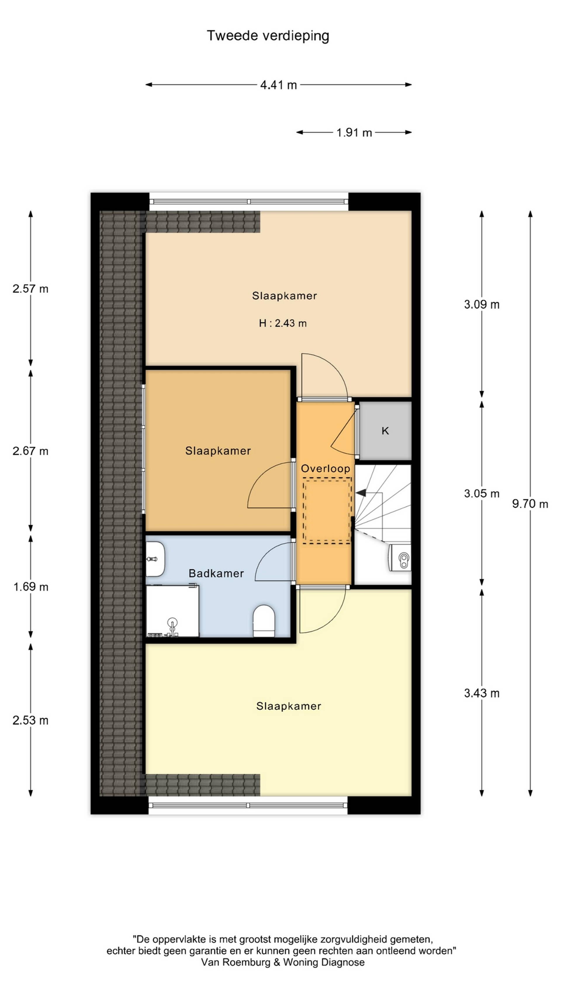 Ruime overloop met cv-opstelling, een lichtkoepel en toegang tot de drie kamers en de tweede royale badkamer. De tweede etage heeft een volledige dakuitbouw over de gehele lengte. De voor- en achterkamer zijn voorzien van een vaste kastenwand. Deze zijn tevens de ombouw voor de radiatoren. In de badkamer vindt u een inloopdouche, wastafel en 3e toilet. De gehele etage is voorzien van hetzelfde eikenhouten lamelparket.