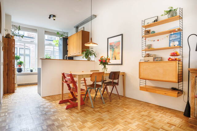 In the Rijndijkbuurt, on the edge of the Professorenwijk, you will find this charming and extended 4-room home with a delightful backyard overlooking lush greenery. On the first floor, there is a lovely roof terrace. Thanks to the roof extension, additional space has been created. In short: a bright and comfortable family home in a pleasant location!