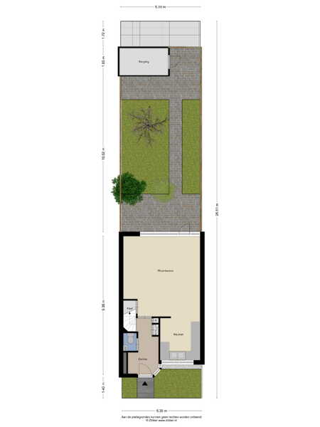Via the entrance you enter the hallway with toilet and staircase. The kitchen is located at the front of the house. The living room is spacious and bright, with large windows on the garden side providing pleasant natural light. From the living room there is direct access to the deep backyard, which features a detached storage shed and a convenient rear entrance. The garden offers plenty of possibilities to redesign it entirely to your own taste.