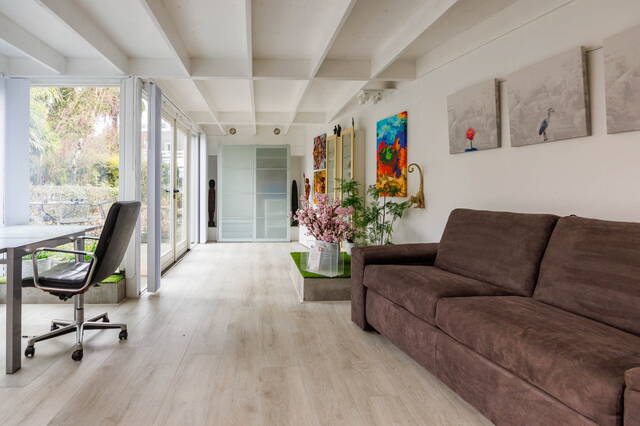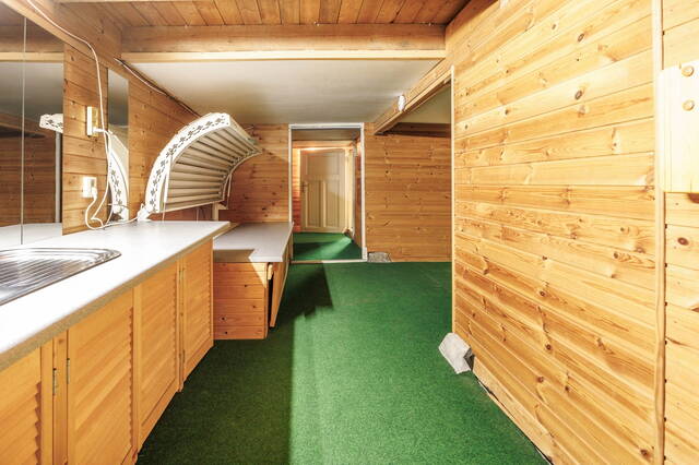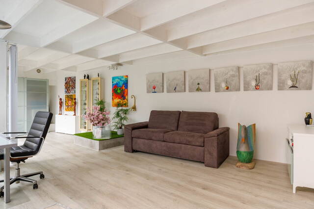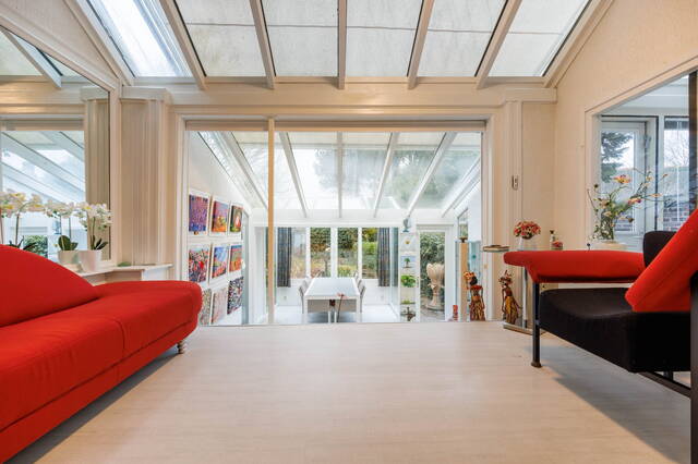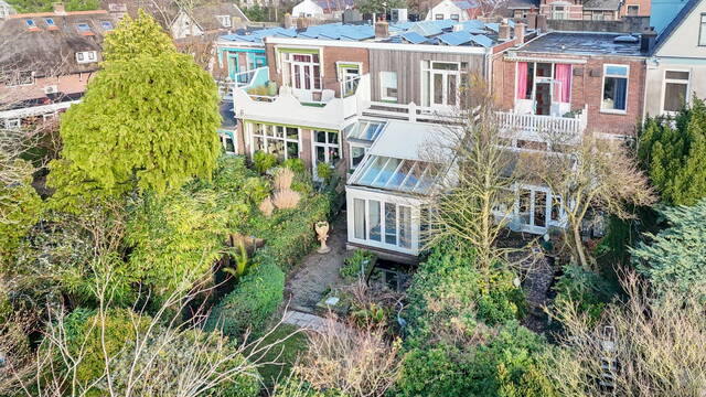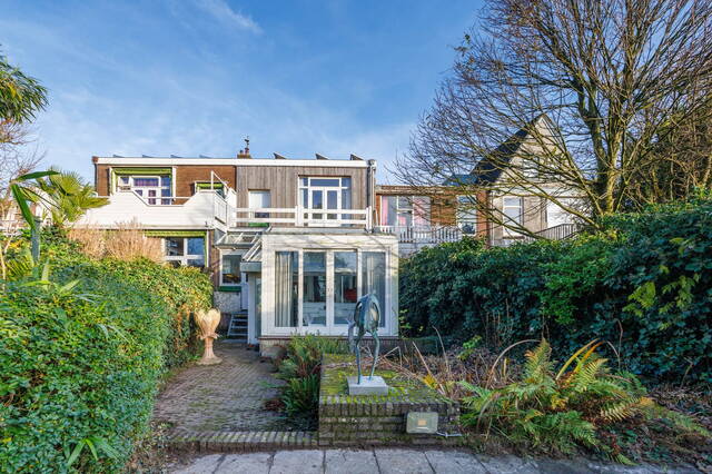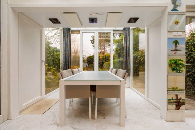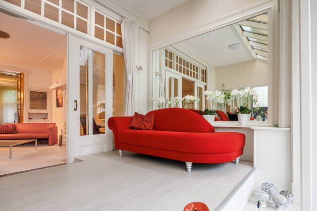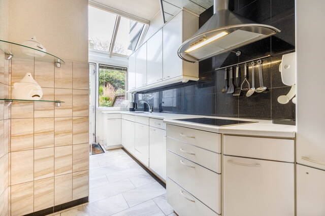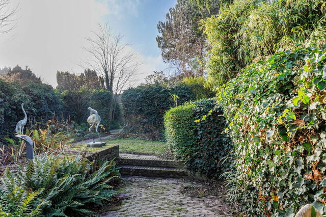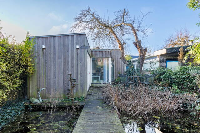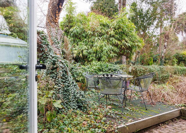This exceptional and spacious home features three bedrooms (expandable), two bathrooms, and a very large split-level living area with a conservatory. At the rear of the beautifully landscaped garden stands a modern garden house (2018) with its own kitchen, bathroom, and living space. Beneath the entire house is a cellar with, among other things, a sauna, shower, study, and laundry area. This unique property with garden house offers ample possibilities for a home office or studio. Two covered parking spaces are located at the rear. The house requires some modernization.