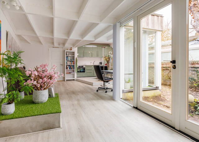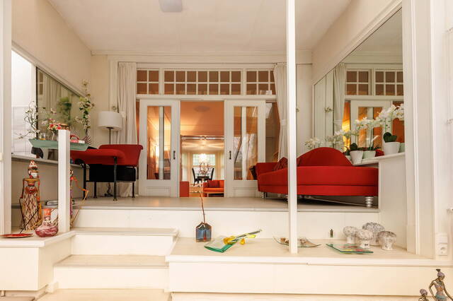 Deze bijzondere en royale woning beschikt over drie slaapkamers (eventueel uit te breiden), twee badkamers en een zeer ruime living met meerdere niveauverschillen en een serre. Achter in de fraai aangelegde tuin staat een modern tuinhuis (2018), voorzien van een keuken, badkamer en een ruime living. Daarnaast bevindt zich onder de gehele woning een kelder, waarin onder andere een sauna, douche, werkkamer en wasruimte zijn gesitueerd. Dit unieke object met tuinhuis biedt volop mogelijkheden voor een praktijk aan huis of atelier. Achter de woning zijn twee overdekte parkeerplaatsen aanwezig. De woning dient hier en daar te worden gemoderniseerd.