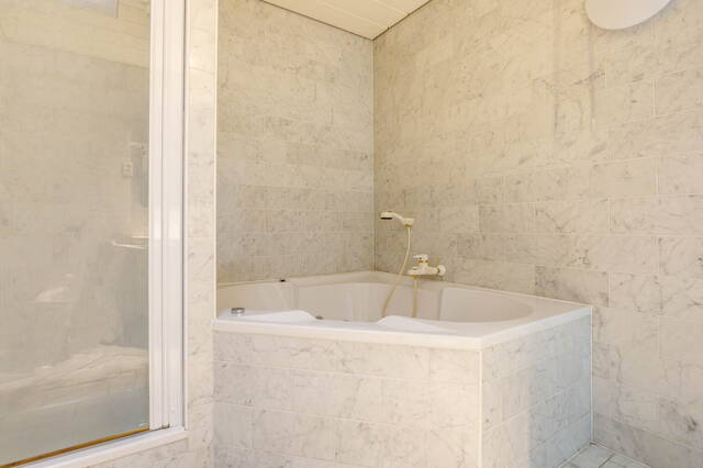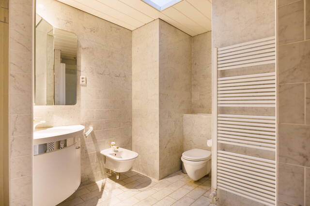 Vanuit deze slaapkamer heb je direct toegang tot de royale badkamer, die is voorzien van een hoekjacuzzi, een inloopdouche, een toilet, een bidet, een designradiator en een wastafelmeubel met spiegel. De tweede badkamer is bereikbaar vanuit de hal en beschikt over een douche, een toilet, een designradiator en een wastafelmeubel met spiegel.