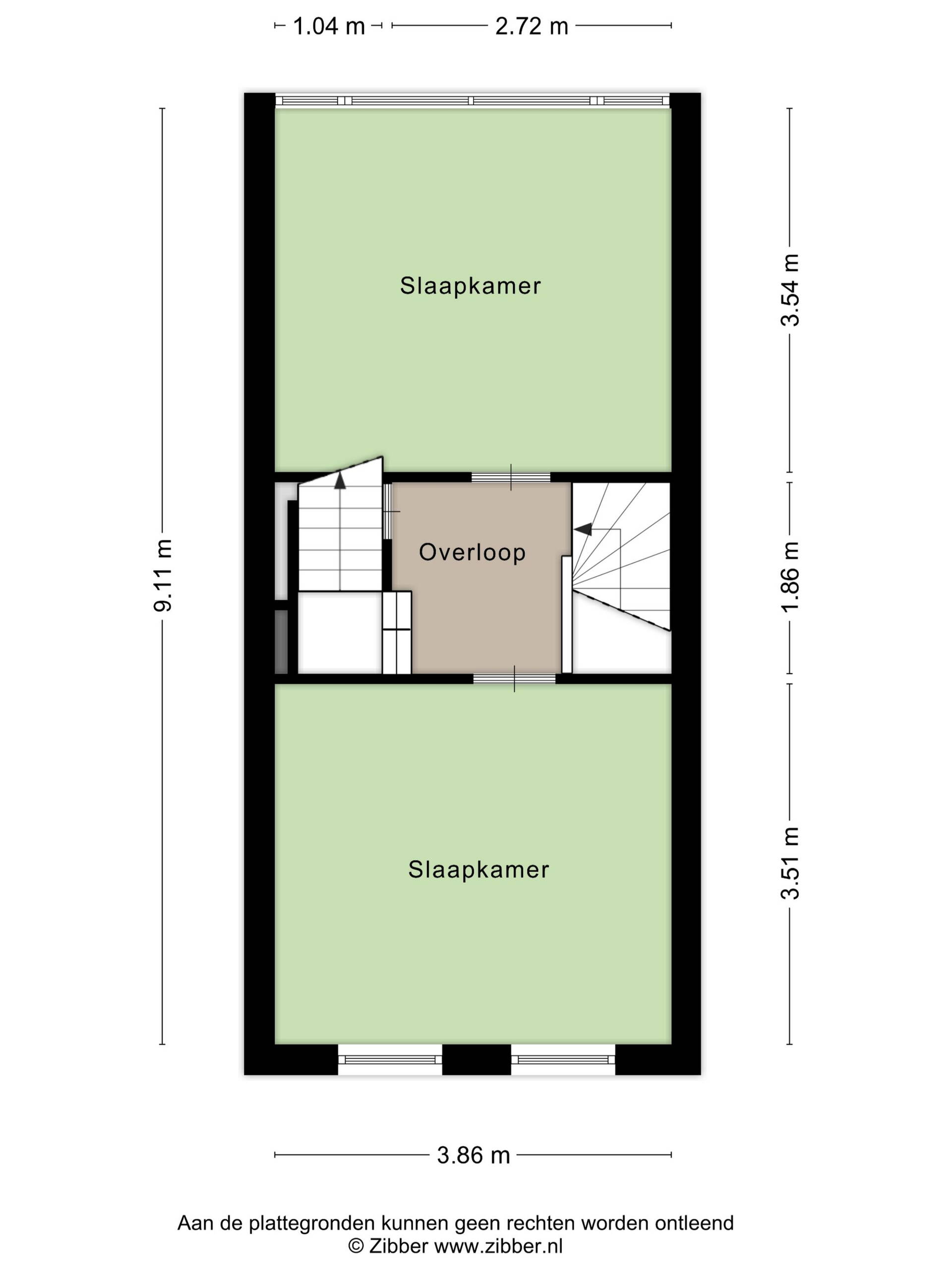 Op de eerste verdieping bevinden zich twee goed bemeten slaapkamers, gelegen aan de voor- en achterzijde van de woning. De overloop geeft toegang tot beide kamers en de vaste trap naar de tweede verdieping.