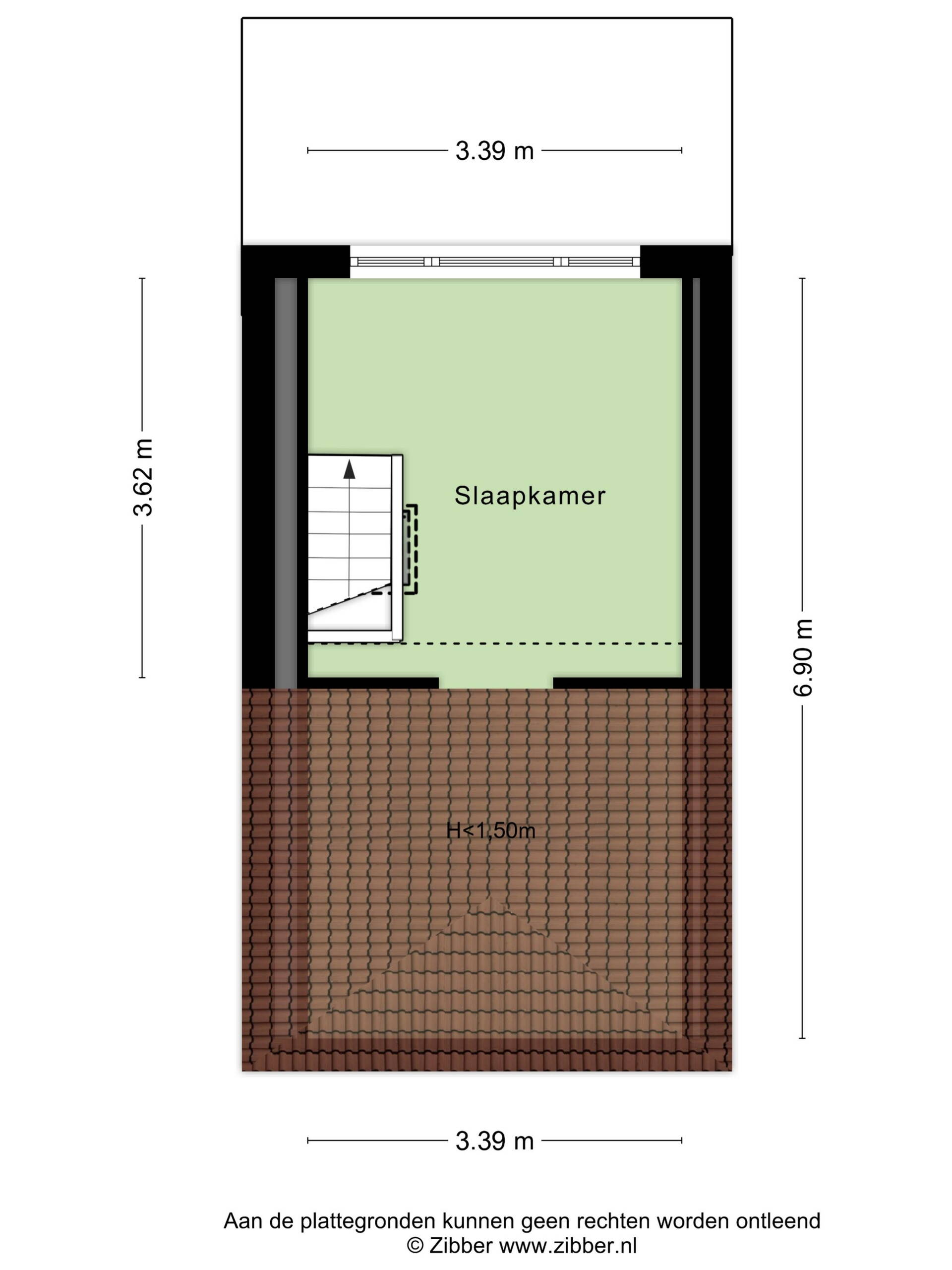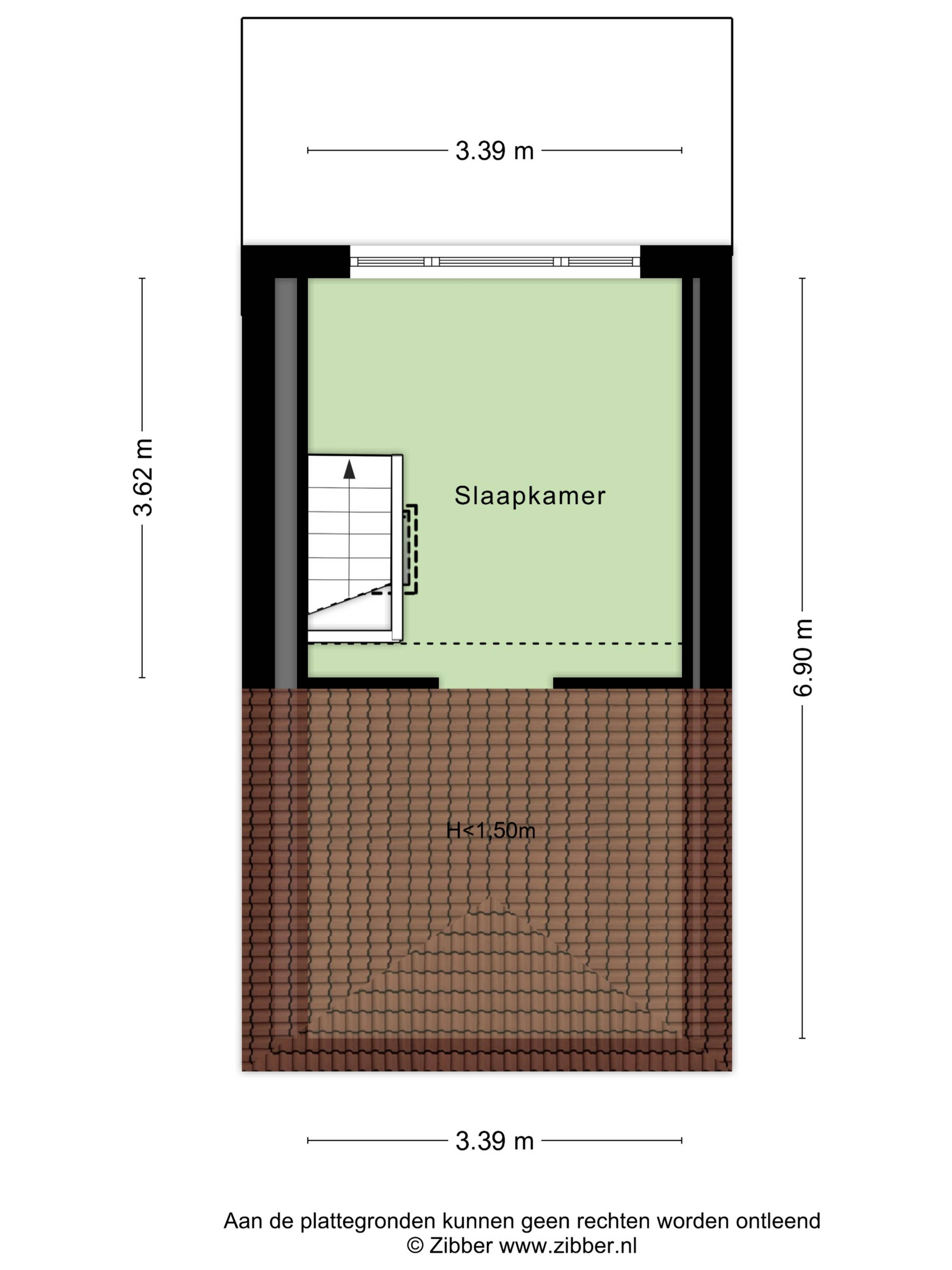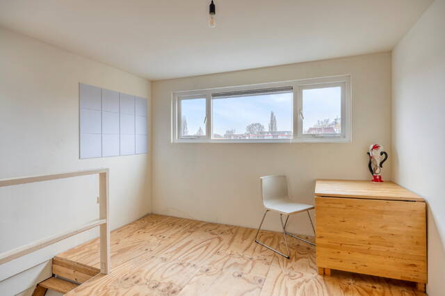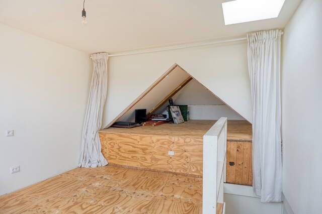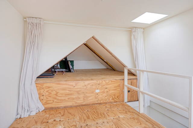 De zolderverdieping is ingericht als derde slaapkamer. Deze ruimte is dankzij de aanwezige ramen prettig licht en ook zeer geschikt als werk- of logeerkamer.
