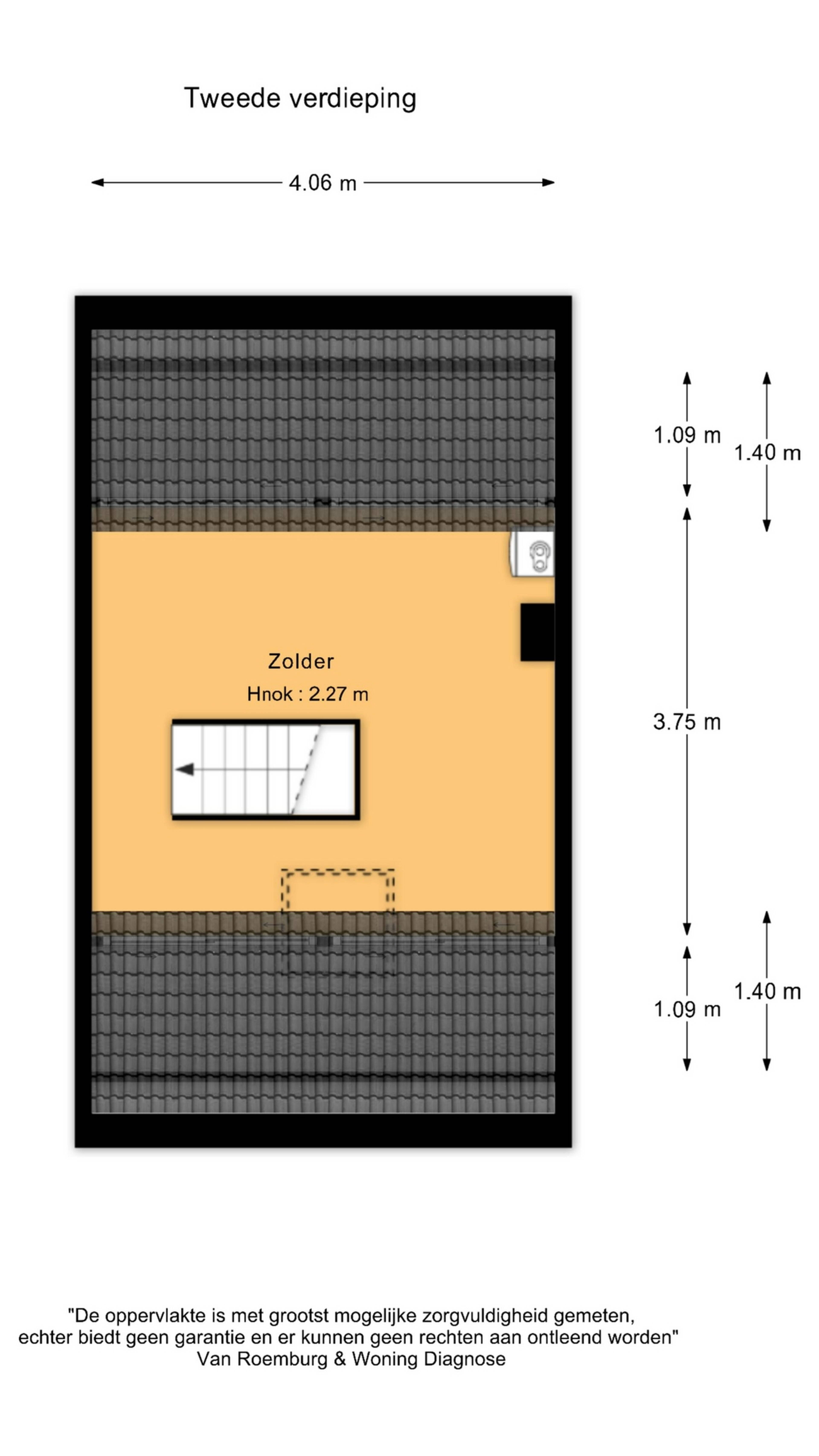 Via een vaste trap bereik je de open zolderverdieping, voorzien van een dakraam en knieschotten voor extra bergruimte. Hier bevindt zich tevens de cv-ketel. Op deze verdieping is het mogelijk om meerdere slaapkamers te realiseren door het plaatsen van dakkapellen.