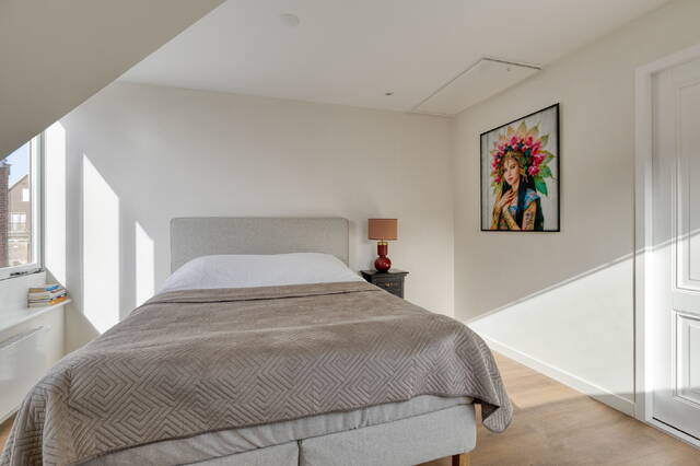 Overloop met toegang tot twee slaapkamers en de badkamer. De kamers zijn efficiënt ingedeeld en geschikt als slaap-, werk- of logeerruimte. De grootste slaapkamer heeft een rustige ligging en een fijne lichtinval. De luxe is uitgevoerd in een moderne stijl met een inloopdouche en wastafelmeubel, passend bij de afwerking van de woning.